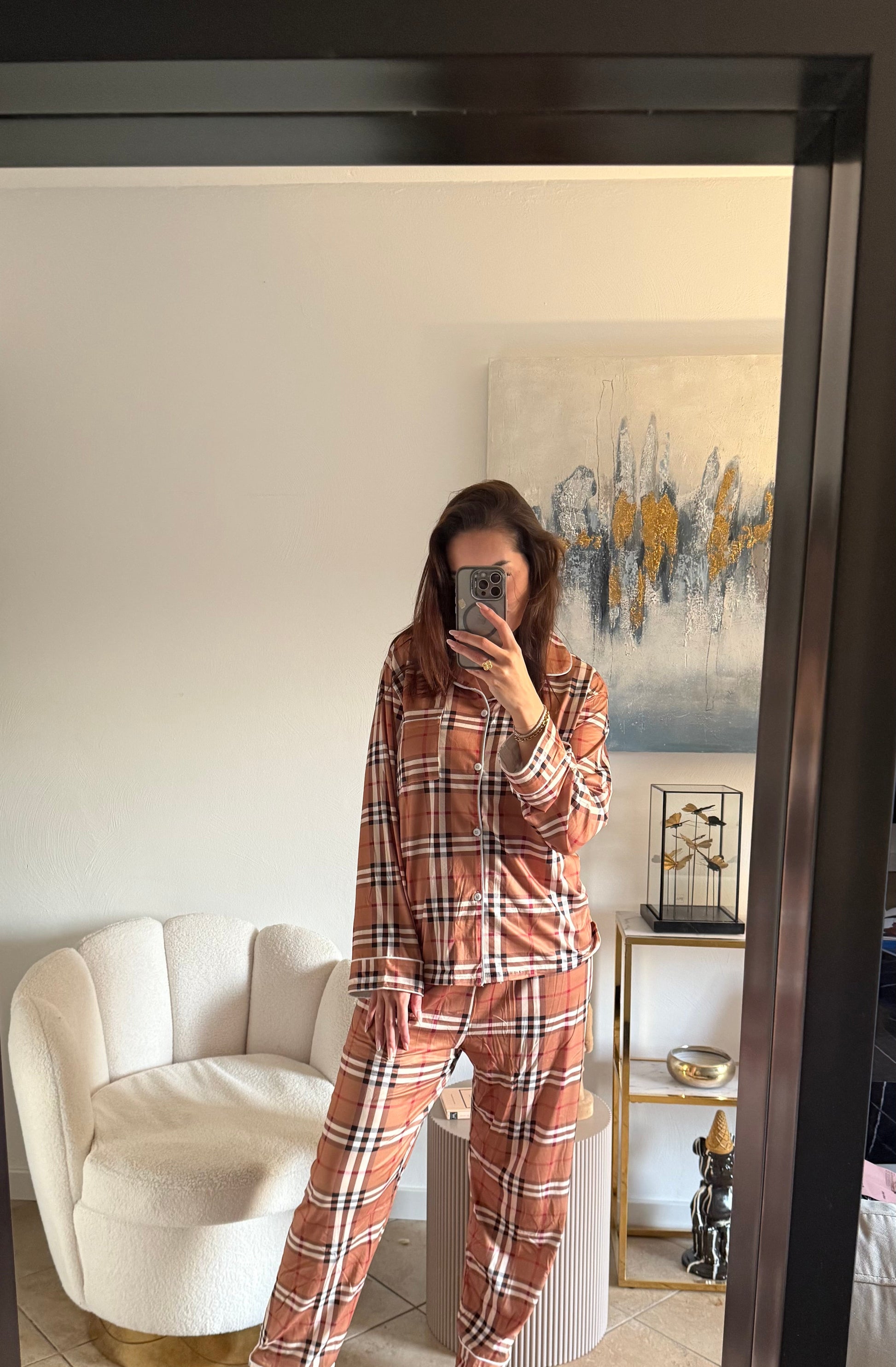 Deze satijnen pyjama is een comfortabele en stijlvolle keuze, gemaakt van zacht glanzend materiaal dat zijdeachtig aanvoelt.